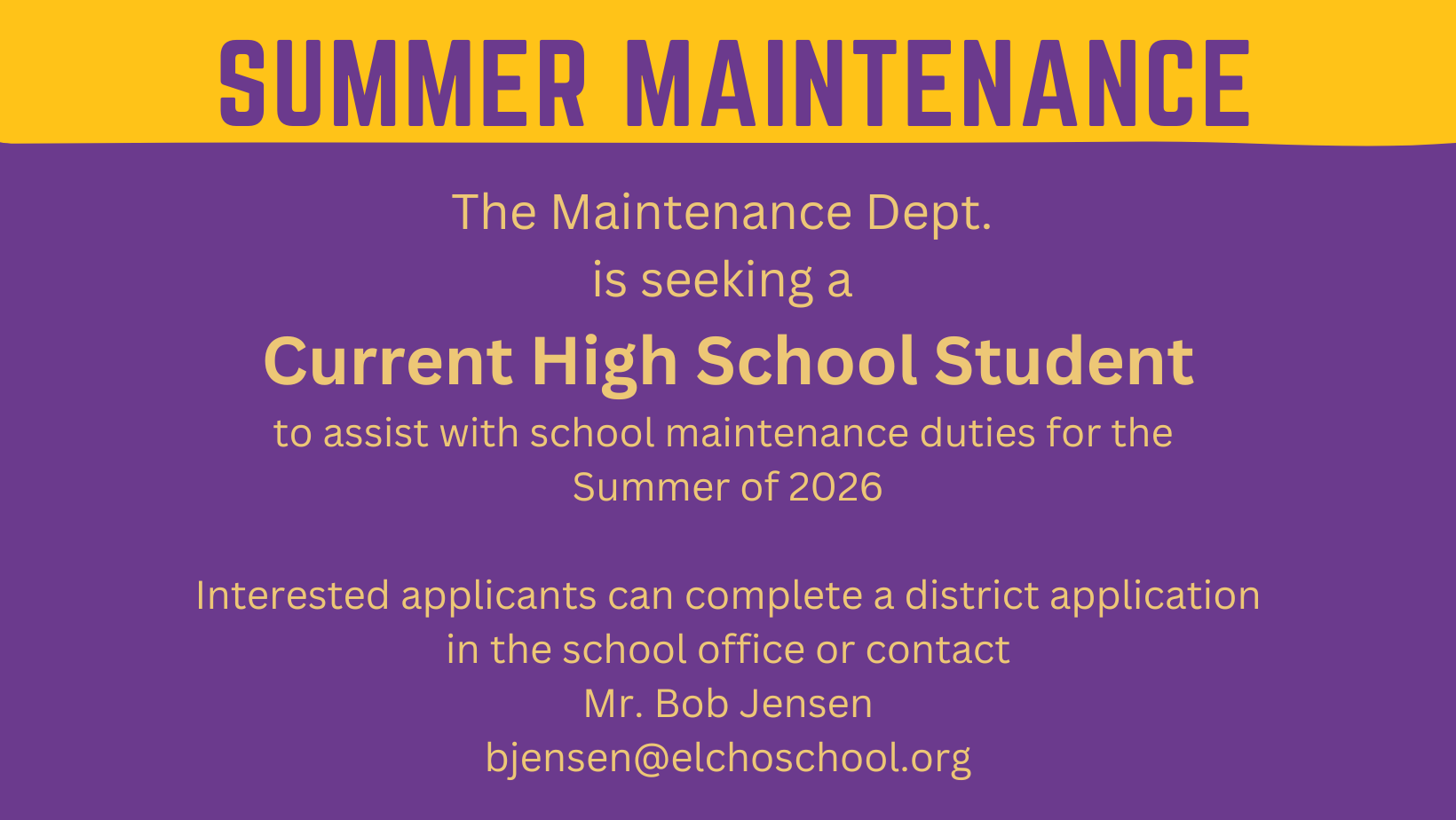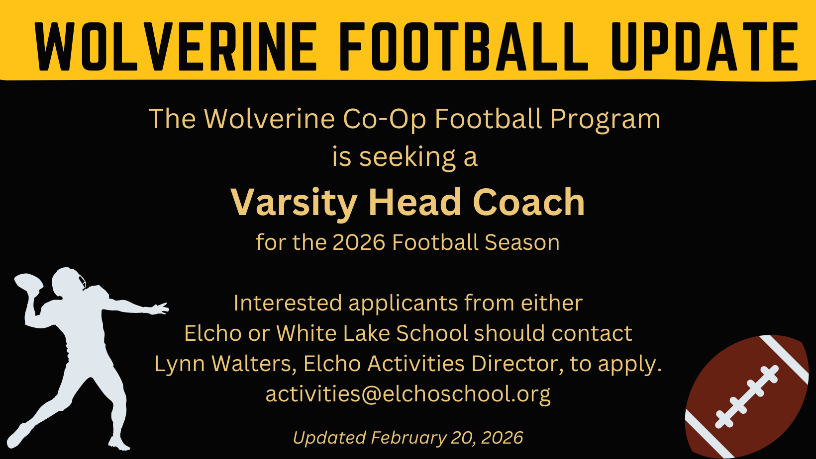 Elcho School District Employment Application Employment Application PDF Employment Application - WECAN Link District Vacancies Wolverine Football Varsity Head Coach Vacancy Wolverine Football Coach Application MS Volleyball Coach Vacancy Summer Maintenance Help - HS Student Worker Teaching Vacancies Substitute Vacancies Teacher Substitutes Application on WECAN Application Procedure for Paraprofessional & Teacher Substitutes